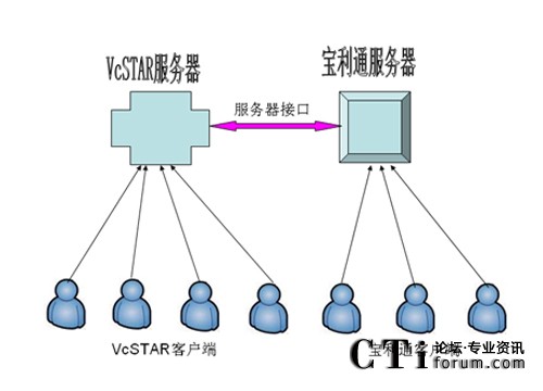 VcSTAR服務(wù)程序與寶利通系統(tǒng)進(jìn)行平臺(tái)對(duì)接,各系統(tǒng)客戶端聯(lián)接各自服務(wù)器系統(tǒng),聲音、圖像、文本等多媒體通過(guò)服務(wù)器間的接口互通。