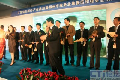 4月21日,江蘇信息服務(wù)產(chǎn)業(yè)基地暨揚(yáng)州市服務(wù)業(yè)集聚區(qū)和服務(wù)業(yè)項(xiàng)目推介洽談會(huì)在江蘇信息服務(wù)產(chǎn)業(yè)基地(揚(yáng)州)隆重召開(kāi),省信息產(chǎn)業(yè)廳副廳長(zhǎng)龔懷進(jìn)、揚(yáng)州市委常委、常務(wù)副市長(zhǎng)張京霞為省信息安全技術(shù)中心揭牌,中國(guó)網(wǎng)通集團(tuán)公司總工程師滕勇,神州數(shù)碼高級(jí)副總裁陳勇,上海萬(wàn)得信息股份董事長(zhǎng)陸風(fēng)等數(shù)十位集團(tuán)公司老總現(xiàn)場(chǎng)祝賀,同時(shí)IBM、AVAYA、優(yōu)勝資訊、神州數(shù)碼等60多家企業(yè)現(xiàn)場(chǎng)簽定了投資合作協(xié)議,而華潤(rùn)通信、中國(guó)電信、酒店無(wú)憂、漢世紀(jì)等10家企業(yè)則從廣陵區(qū)委書(shū)記孔令俊手中接過(guò)了入駐金鑰匙,成為首批入駐江蘇信息服務(wù)產(chǎn)業(yè)基地的企業(yè),至此江蘇信息服務(wù)產(chǎn)業(yè)基地迎來(lái)首發(fā)項(xiàng)目招商的“開(kāi)門(mén)紅”,江蘇信息服務(wù)產(chǎn)業(yè)基地也因此被業(yè)界冠以中國(guó)首家專(zhuān)業(yè)定位信息呼叫和數(shù)據(jù)處理產(chǎn)業(yè)的“中國(guó)聲谷”的美譽(yù)。 “江蘇信息服務(wù)產(chǎn)業(yè)基地(揚(yáng)州)”位于廣陵新城內(nèi),為省信息產(chǎn)業(yè)廳與揚(yáng)州市政府聯(lián)手打造的中國(guó)首家專(zhuān)業(yè)定位于呼叫信息和數(shù)據(jù)處理產(chǎn)業(yè)的省級(jí)信息服務(wù)業(yè)基地,占地2.52平方公里,總投資50億元,處于揚(yáng)州ECBD核心區(qū)域,交通便捷,區(qū)位優(yōu)勢(shì)獨(dú)特,生態(tài)環(huán)境優(yōu)美。基地按照“產(chǎn)業(yè)社區(qū)”的標(biāo)準(zhǔn)和“商務(wù)公園”的理念規(guī)劃建設(shè),重點(diǎn)發(fā)展信息服務(wù)產(chǎn)業(yè)及具有揚(yáng)州特色的城市信息化應(yīng)用軟件和嵌入式軟件產(chǎn)業(yè),立足長(zhǎng)三角、面向全國(guó)、服務(wù)世界,逐步發(fā)展成為全國(guó)乃至世界呼叫中心產(chǎn)業(yè)最佳實(shí)踐基地、全國(guó)生產(chǎn)性服務(wù)業(yè)的標(biāo)桿示范基地及呼叫中心人才培訓(xùn)與派遣基地。