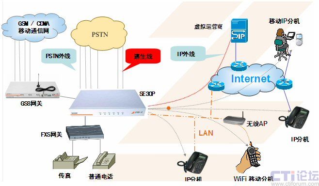 采用SE30系列的IP語音媒體交換機(jī)搭建辦公語音通信平臺,簡化了原先繁雜的語音通信系統(tǒng),可以輕而易舉地集成到用戶現(xiàn)有的網(wǎng)絡(luò)中,節(jié)省了大量的網(wǎng)絡(luò)改造成本及通訊費(fèi)用。部署快捷、管理方便、功能強(qiáng)大、應(yīng)用靈活、降低成本等優(yōu)勢明顯;特別適用于出差、家庭辦公、移動辦公頻繁的現(xiàn)代中小型企業(yè)用戶,極容易實現(xiàn)多點(diǎn)異地VoIP組網(wǎng)應(yīng)用。