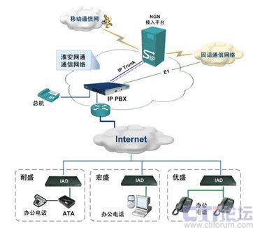 采用NGN+IP PBX的解決方案,不僅可以增強(qiáng)IP PBX組網(wǎng)和業(yè)務(wù)通信能力,還可以配合運(yùn)營商的NGN平臺開拓多種業(yè)務(wù)模式,成為NGN的有效擴(kuò)展,為運(yùn)營商和最終用戶提供雙贏的有利協(xié)助。淮安網(wǎng)通就采用了Zed-3(捷思銳科技)的IP PBX進(jìn)行大客戶的語音接入。該IP PBX主要提供了用戶分機(jī)號碼分配功能,并為用戶提供語音池(IVR)、語音信箱、保密呼叫、NGN業(yè)務(wù)接入等多種應(yīng)用服務(wù)。