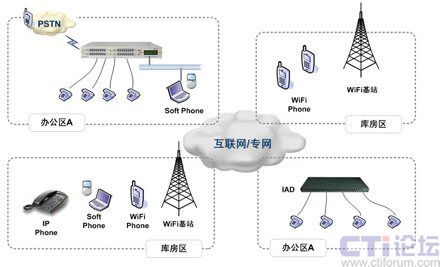 隨著北京西南物流中心業(yè)務(wù)的不斷發(fā)展,其庫(kù)區(qū)在不斷落成,倉(cāng)儲(chǔ)面積仍不斷擴(kuò)大。由于各個(gè)庫(kù)區(qū)及辦公樓都具有無(wú)線Mesh網(wǎng)絡(luò)覆蓋,西南物流中心在現(xiàn)有無(wú)線網(wǎng)絡(luò)基礎(chǔ)上陸續(xù)開(kāi)展企業(yè)信息化業(yè)務(wù)。由于各個(gè)庫(kù)房與辦公樓之間都有一定距離,因?yàn)樵谥行牡耐ㄐ懦杀緲?gòu)成中,內(nèi)部業(yè)務(wù)部門(mén)之間的溝通占據(jù)了絕對(duì)的比重,經(jīng)常居高不下的通信成本嚴(yán)重制約了北京西南物流中心業(yè)務(wù)的發(fā)展,于是,現(xiàn)實(shí)的溝通需求與高昂的通信成本之間的矛盾開(kāi)始凸現(xiàn),內(nèi)部語(yǔ)音通信就成為了西南物流中心需要解決的首要任務(wù)之一。