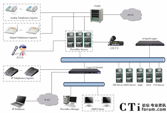 圖2-1 錄音系統(tǒng)典型組網(wǎng)