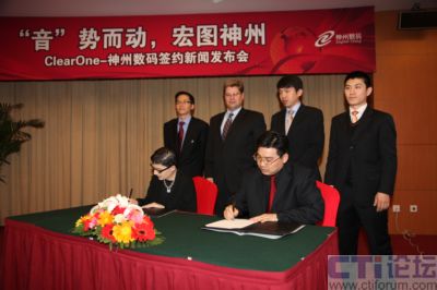 2009年3月10日,國內(nèi)最大的整合IT服務(wù)提供商神州數(shù)碼和國際領(lǐng)先的高端音頻會議系統(tǒng)供應(yīng)商ClearOne在京簽約,共同拓展國內(nèi)音頻會議系統(tǒng)市場,依托ClearOne的技術(shù)、產(chǎn)品、行業(yè)優(yōu)勢和神州數(shù)碼強(qiáng)大的市場號召力及運維能力,開創(chuàng)國內(nèi)音頻會議系統(tǒng)領(lǐng)域全新格局,為企業(yè)、教育、培訓(xùn)、醫(yī)療及政府等行業(yè)客戶帶來全新震撼體驗!