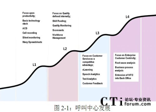 在現(xiàn)實(shí)中,還存在零程度的呼叫中心,這一點(diǎn)并沒有體現(xiàn)在呼叫中心發(fā)展路線圖上。零程度的呼叫中心就是那些在運(yùn)營過程中并沒有很好地認(rèn)識到自己角色以及對自己未來的發(fā)展毫無計劃的呼叫中心。