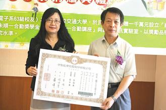 眷村子弟出身的朱順一,交大電子工程系畢業(yè),十三年前,就捐贈一千萬元給交大,成立“網(wǎng)絡(luò)通訊技術(shù)發(fā)展基金”,培育網(wǎng)通人才,另設(shè)立獎學(xué)金,濟(jì)助清、交大學(xué)生和竹苗地區(qū)高中清寒學(xué)生。