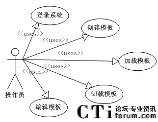 報表設(shè)計工具,主要功能是用來在可視化界面中察看和修改記錄統(tǒng)計,負(fù)責(zé)處理報表的設(shè)計工作。它應(yīng)該具有全面的報表設(shè)計功能和友好的用戶界面,能夠被普遍的數(shù)據(jù)處理和編輯時所采用。該報表設(shè)計工具的操作員利用該工具可以進行系統(tǒng)登錄,創(chuàng)建模板,編輯模板,加載模板,卸載模板等,用例圖[30]