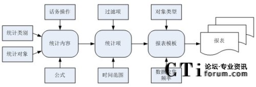 模板的劃分用來簡化了報表的復雜性。根據(jù)這些關鍵性模板,以公正的最重要的呼叫中心的統(tǒng)計資料過濾關鍵性數(shù)據(jù),然后以各種各樣的可視化顯示技術來展示報表數(shù)據(jù)。