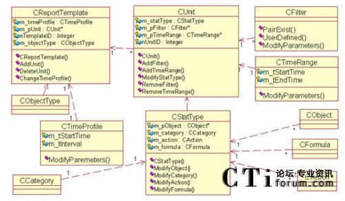 從以上類圖結構可得,報表模板設計中包括以下類: