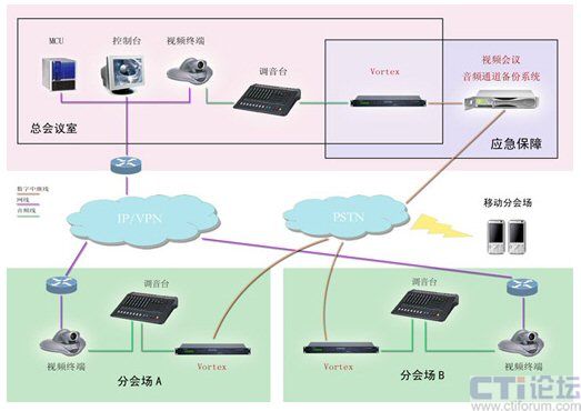 反應(yīng)迅速,確保會(huì)議正常召開:視頻會(huì)議過(guò)程中,出現(xiàn)任何故障,用戶可一鍵迅速切換至備份系統(tǒng)。系統(tǒng)即刻通過(guò)PSTN網(wǎng)傳輸?shù)臅?huì)議語(yǔ)音,利用已有的音箱、麥克等傳入和傳出會(huì)場(chǎng),確保會(huì)議語(yǔ)音正常召開。