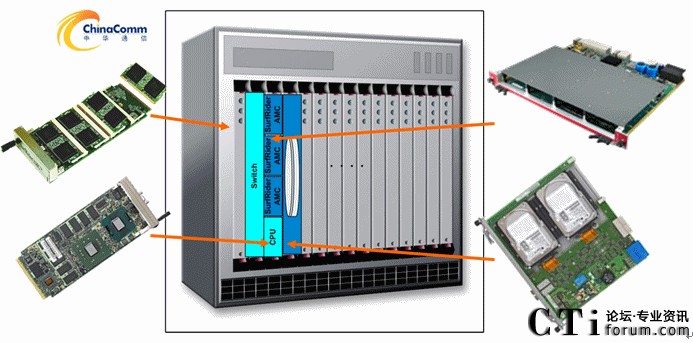 ATCA的背板: ATCA的背板采用雙星型結(jié)構(gòu),背板的網(wǎng)絡(luò)吞吐量是20G,如果業(yè)務(wù)需要更高的媒體流量,背板可以改用全網(wǎng)狀結(jié)構(gòu),設(shè)計(jì)流量達(dá)到40T.