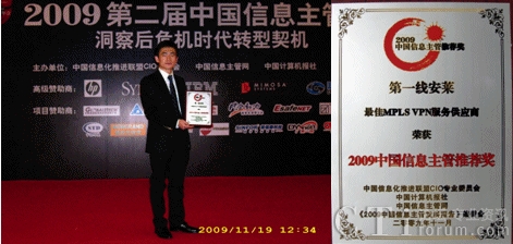 CTI論壇(ctiforum)11月25日消息(記者 張塵):2009年11月19日,2009年中國信息主管年會在北京世紀(jì)金源大飯店盛大召開,會議共吸引了各行業(yè)千名CIO線上與線下的參與。作為中國CIO云集的高峰會議,第一線安萊全程參與了本次大會,從產(chǎn)品方案與展示等方面向業(yè)界展示了第一線安萊10年多來在MPLS VPN服務(wù)領(lǐng)域的最佳實(shí)踐經(jīng)驗(yàn)與卓越的市場領(lǐng)導(dǎo)地位,贏得了各與會嘉賓及CIO們的普遍認(rèn)同和稱贊。