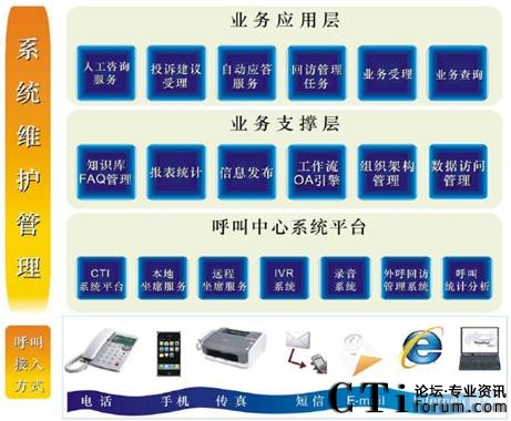 系統(tǒng)通過人工坐席、自助語音服務(wù)、電子郵件、傳真、即時聊天工具等方式,受理客戶所申辦的快遞業(yè)務(wù),生成派單并轉(zhuǎn)發(fā)給相應(yīng)部門進(jìn)行處理。待處理結(jié)果通過網(wǎng)絡(luò)返回到企業(yè)呼叫中心后,客服人員以電話、傳真、短信息、電子郵件等方式回復(fù)客戶?蛻粢部呻S時通過本系統(tǒng)了解所申辦業(yè)務(wù)現(xiàn)處于哪一環(huán)節(jié)及哪一部門所處理。系統(tǒng)的來電彈跳功能可以使客服人員第一時間獲知來電者的身份背景資料,迅速了解其歷史消費(fèi)信息、詳細(xì)地址等等資料。