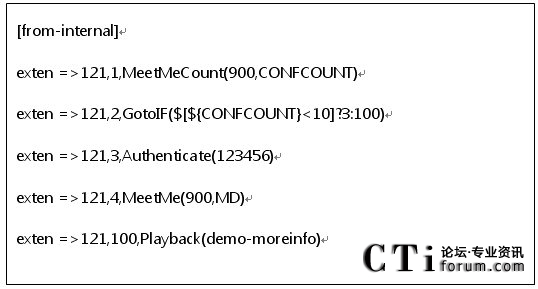 3.下面我們需要在meetme.conf這個文件中添加會議房間號