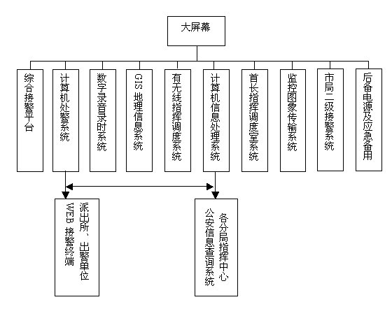 本次建設(shè)需要采用綜合通信技術(shù),將110、119、122系統(tǒng)的計(jì)算機(jī)網(wǎng)絡(luò)和有、無線通信網(wǎng)有機(jī)互聯(lián),建成集接處警信息獲取、統(tǒng)計(jì)、查詢、發(fā)布于一體,并通過地理信息和多媒體大屏幕顯示等輔助系統(tǒng)的綜合指揮調(diào)度,實(shí)現(xiàn)110、119、122快速反應(yīng)、信息共享的目的。為此,各系統(tǒng)應(yīng)分別具有下述功能: