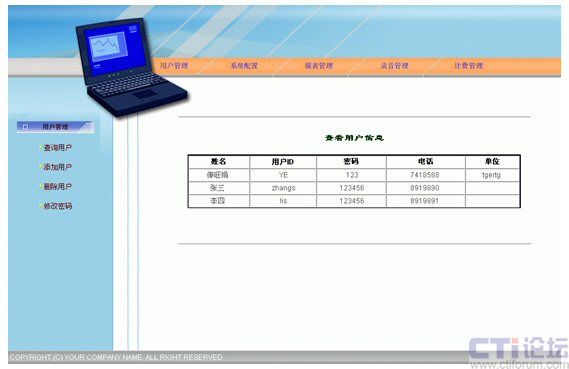 - 對座席話務員進行多種方式的錄音(定時、全程)