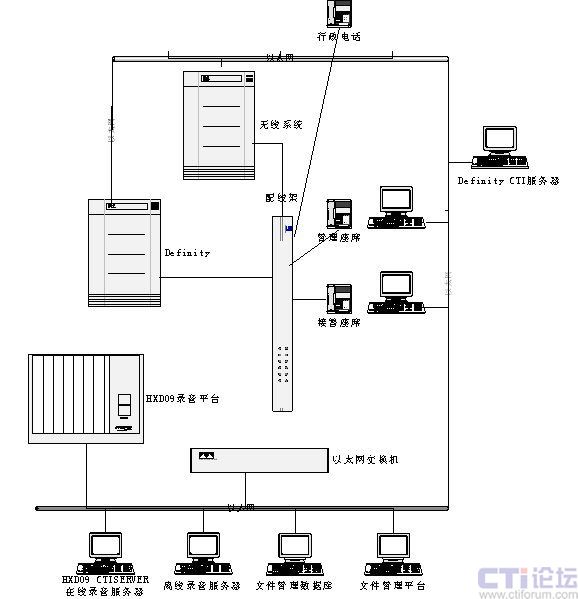 - HXD09 CTI服務(wù)器(在線錄音服務(wù)器):HXD09交換機系統(tǒng)服務(wù)器,開發(fā)平臺。完成系統(tǒng)部分控制,在線錄音等功能。