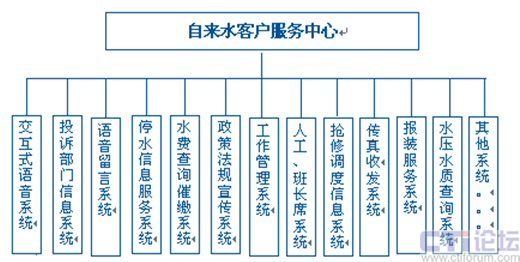 服務(wù)中心對外面向用戶服務(wù),對內(nèi)與整個自來水公司相聯(lián)系,將管理、監(jiān)控、考核、服務(wù)結(jié)為一體,它還可以把從用戶那里所獲得的各種信息、數(shù)據(jù)全部儲存在龐大的數(shù)據(jù)庫中,并能形成各類分析報表,供領(lǐng)導(dǎo)做分析和決策之用。