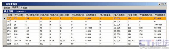 主要考察系統(tǒng)分項業(yè)務(wù)指標,如中繼線、分機、座席員、業(yè)務(wù)組等,便于了解系統(tǒng)運行狀況