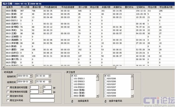 選定不同的座席員(單個或全部座席員),選定時間段內(nèi)的座席員服務(wù)指標。