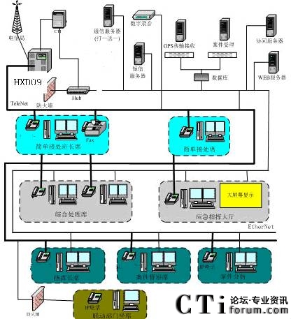 綜合指揮通過CTI技術(shù)實現(xiàn)有無線通訊指揮。