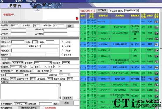 監(jiān)督臺顯示所有接處警坐席的工作狀態(tài),并用不同的顏色標示不同的狀態(tài)。