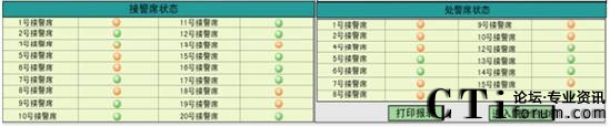 系統(tǒng)模塊中具有網(wǎng)絡(luò)運行檢測監(jiān)控等功能,可對所有接處警的網(wǎng)絡(luò)連通狀態(tài)、系統(tǒng)登錄狀態(tài)等進行狀態(tài)檢測,并當(dāng)網(wǎng)絡(luò)客戶端有誤時系統(tǒng)會自動報警,并可把狀態(tài)報告存儲下來以供查閱。