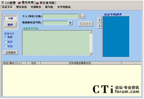 建立在“三臺(tái)合一指揮系統(tǒng)”的基礎(chǔ)上,在調(diào)度指令發(fā)送的同時(shí),建立和保持同一線指揮員和作戰(zhàn)人員的通信聯(lián)系,及時(shí)準(zhǔn)確地將變化情況向有關(guān)領(lǐng)導(dǎo)報(bào)告,確保領(lǐng)導(dǎo)在各種通信設(shè)備條件(手機(jī)、小靈通、辦公電話、家庭電話)下,在第一時(shí)間內(nèi)得到現(xiàn)場信息,極大地減輕了接警員的工作負(fù)擔(dān)。系統(tǒng)具備如下功能: