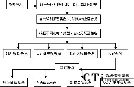 本方案所確立的110、119、122接處警模式是“集中接警、自動分流處警”。