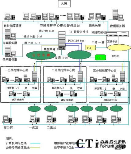 110、119、122報警電話的傳送:110、119、122報警電話呼入及分流出局通過2條PCM 2M數(shù)字中繼線路,其中1條PCM 2M(30/32)接口為報警入,另1條PCM