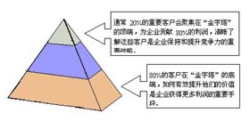 從抽象和通用的意義上講,多數企業(yè)的客戶價值分布是適合“二八法則”的,即20%的客戶創(chuàng)造了80%的利潤。但對每個企業(yè)而言,要洞察“究竟哪些客戶才是最有價值的客戶?”“這些客戶在哪些方面的價值最大?”“他們有什么共同的特征?”卻不是一件很容易的事。目前,多數企業(yè)的管理方式還停留在根據某一項或兩項單一指標(如銷售額或利潤)來作的客戶排行,無法進行多方位的綜合的客戶價值分析、管理。而要實現“以客戶為中心”的CRM理念,就必須建立一套全面的客戶價值評估管理系統(tǒng),并利用系統(tǒng)強大的數據分析、挖掘功能,快速地進行客戶群價值細分管理,建立起客戶價值金字塔。
