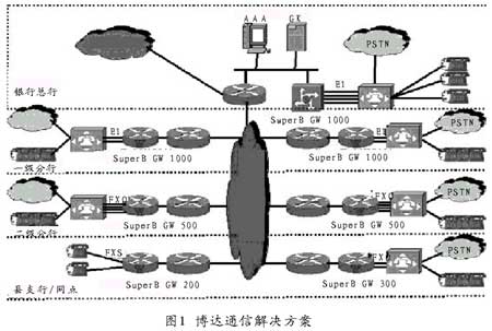 上海博達數(shù)據(jù)通信有限公司在2000年率先推出了一系列IP語音網關產品,為用戶定制了IP電話全網解決方案,以最大的靈活性,在應用IP電話技術的同時提高原有計算機網絡的利用效率。博達通信金融行業(yè)VoIP解決方案把已有的IP網絡同傳統(tǒng)的PSTN通信體系有效融合,為金融系統(tǒng)提供全方位的可管理、智能化的語音解決方案。