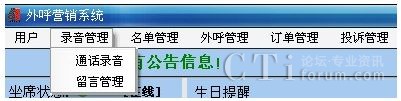 有錄音、監(jiān)聽、發(fā)送傳真、接收傳真、語音識(shí)別(ASR)等功能,處理話路與人工坐席的連接、來話轉(zhuǎn)移、保留、坐席呼出等功能,用戶與人工坐席的通話過程可實(shí)現(xiàn)全程錄音。