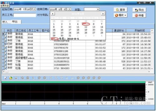 通過電話錄音監(jiān)聽系統(tǒng),對所有來話進(jìn)行全程錄音,從而達(dá)到質(zhì)量監(jiān)督和防范糾紛的功能,并可以通過錄音系統(tǒng)讓優(yōu)秀服務(wù)代表的錄音實(shí)例成為案例學(xué)習(xí)的典范,同時(shí),通過錄音系統(tǒng),還可實(shí)時(shí)監(jiān)聽服務(wù)代表的通話。