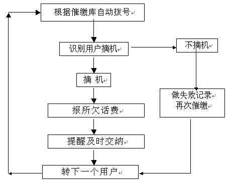 。。使用本系統(tǒng)后的催繳方式:計(jì)算機(jī)到了合適催繳的時(shí)間,會(huì)自動(dòng)撥打手機(jī)或聯(lián)系電話進(jìn)行話費(fèi)催繳,如:“尊敬的用戶您好,我是移動(dòng)客戶服務(wù)中心,首先提醒您的是本次通話為免費(fèi)通話,F(xiàn)在您的手機(jī)已經(jīng)欠費(fèi),欠費(fèi)金額為158.6元,請(qǐng)您速到各移動(dòng)營(yíng)業(yè)廳和銀行網(wǎng)點(diǎn)交費(fèi),以免影響您的正常使用,謝謝!”,這里有幾個(gè)問題需要重視: