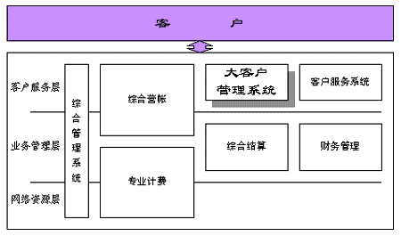 綜合電信業(yè)務(wù)服務(wù)支撐系統(tǒng)由專業(yè)計費、綜合營帳、綜合客服、綜合結(jié)算和統(tǒng)一客戶資料等系統(tǒng)組成。其中的大客戶服務(wù)系統(tǒng)是電信運營商面向大客戶提供服務(wù)的接口,通過大客戶市場開拓、大客戶信息收集及管理、大客戶服務(wù)及營銷、企業(yè)決策支持等一系列的活動,實現(xiàn)方便、快捷、高品質(zhì)的大客戶服務(wù)。