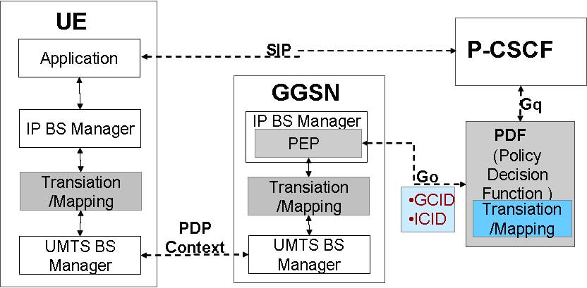 (2)在3GPPR5中,PDF是P-CSCF的一個邏輯實體,R6中PDF是一個獨(dú)立的功能,分離后的PDF與P-CSCF間為基于Diameter協(xié)議的Gq接口、PDF與GGSN間為基于COPS協(xié)議的GO接口;