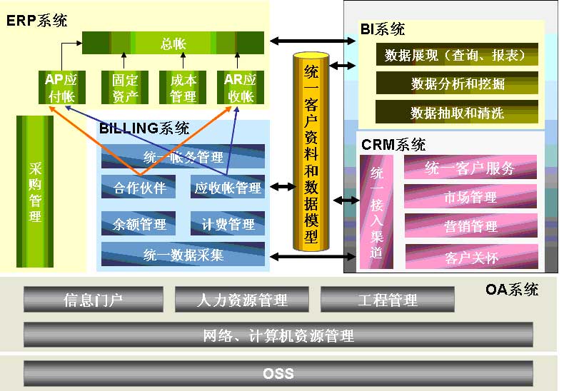 在IMS時代計費(fèi)將向網(wǎng)絡(luò)側(cè)傾斜,傳統(tǒng)的BSS將向BOMS(BusinessOperationManagementSystem)演進(jìn),BSS的重心將向營銷、CRM和服務(wù)等業(yè)務(wù)管理及分析轉(zhuǎn)變。結(jié)合NGOSS的發(fā)展,運(yùn)營支撐系統(tǒng)逐漸演變?yōu)镃RM+BILING的體系架構(gòu)。