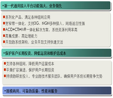 從服務(wù)內(nèi)容來看,聯(lián)絡(luò)中心建立了一個(gè)統(tǒng)一面向客戶的綜合性服務(wù)平臺(tái),實(shí)現(xiàn)涵蓋公司各項(xiàng)主要產(chǎn)品和業(yè)務(wù)的專業(yè)信息咨詢與交易功能,并實(shí)現(xiàn)人工服務(wù)、業(yè)務(wù)咨詢、業(yè)務(wù)處理、投訴處理、建議受理、預(yù)約服務(wù)、客戶回訪等一體化的話務(wù)處理與管理,為客戶提供多樣化、全方位、個(gè)性化的接入方式與服務(wù)內(nèi)容。