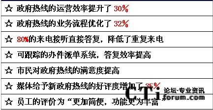 在我們的采訪中,深圳市政府認(rèn)為,建設(shè)法治政府、廉潔政府、效率政府、有限政府、陽光政府和責(zé)任政府,前提是政府必須完成轉(zhuǎn)型。政府行政體制改革的最終目標(biāo)是要達到行政權(quán)力規(guī)范,服務(wù)型的一個政府。因而,為市民提供專業(yè)權(quán)威和有效的政府熱線服務(wù)成為題中之意。通過深圳市12345政府熱線的成功應(yīng)用,我們可以體會到呼叫中心應(yīng)用于政府及公用事業(yè)部門后,受益的不僅是千百萬公眾,更重要的是加速了在社會急劇變革時代政府職能的現(xiàn)代化轉(zhuǎn)型。