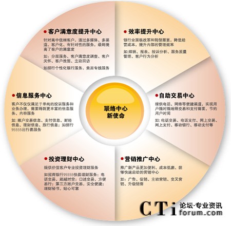 對于銀行業(yè)來說,聯(lián)絡中心已經(jīng)成為為客戶提供優(yōu)質(zhì)、快捷的金融理財服務的第二窗口。隨著電子化建設的不斷深入,寬帶、Internet和3G時代帶來的IP融合,聯(lián)絡中心為金融服務帶來了更廣泛的創(chuàng)新,未來的銀行聯(lián)絡中心將為客戶提供的金融服務趨于無所不能。銀行聯(lián)絡中心已經(jīng)成為自助交易中心、投資理財中心、營銷推廣中心和信息服務中心,借助聯(lián)絡中心,銀行與客戶可以隨時隨地建立緊密的多媒體互動,提升客戶滿意度和服務效率。