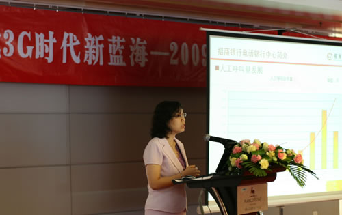 圖:招商銀行客服中心總經(jīng)理徐子穎做《精細化管理之流程改善》主題演講