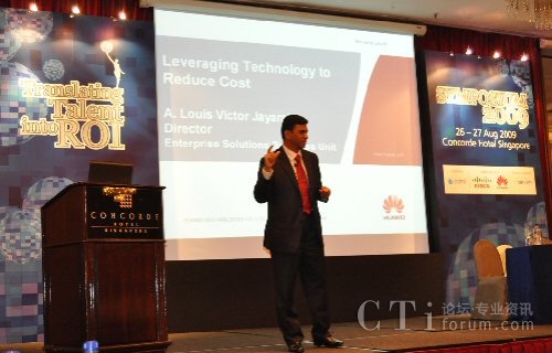 本次CCAS Symposium 2009的主題為“Translating talent into ROI”,著重探討在目前金融危機(jī)的陰霾下,如何通過(guò)精細(xì)化的運(yùn)營(yíng)管理,將人力資源或人才轉(zhuǎn)換成實(shí)實(shí)在在的投資回報(bào)率。華為資深專(zhuān)家Louis”做了”Leveraging