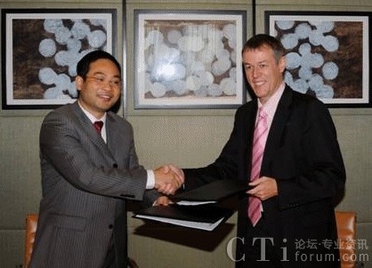 圖:華為無(wú)線(xiàn)產(chǎn)品線(xiàn)副總裁鄭葉來(lái)(左),與AIRCOM International首席技術(shù)官 Ricky Watts簽署技術(shù)合作協(xié)議。