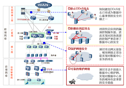 隨著各種黑客工具的推陳出新,數(shù)據(jù)中心面臨的安全威脅越來越大。數(shù)據(jù)中心網(wǎng)絡(luò)的安全必須從多個維度進(jìn)行設(shè)計。