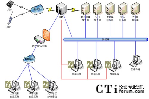 呼叫中心是一種基于CTI技術(shù)、充分利用通信網(wǎng)和計算機網(wǎng)的多項功能集成,并與企業(yè)連為一體的一個完整的綜合信息服務(wù)系統(tǒng),利用現(xiàn)有的各種先進的通信手段,效地為客戶提供高質(zhì)量、高效率、全方位的服務(wù)。表面上看,呼叫中心是企業(yè)在最外層加上了一個服務(wù)層。實際上,它不僅對企業(yè)的外部用戶具有服務(wù)功能,同時也為企業(yè)內(nèi)部的管理、服務(wù)、調(diào)度、增值起到非常重要的協(xié)調(diào)作用。