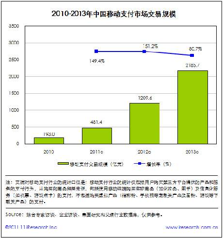 2011年中國移動支付交易規(guī)模將達(dá)到481.4億元