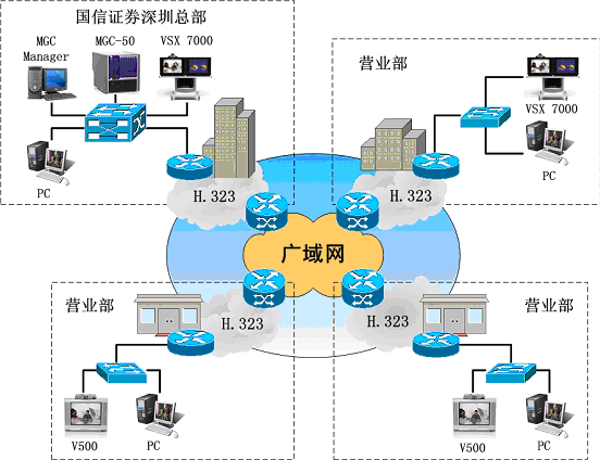 國信證券有限責任公司為全國性大型綜合類證券公司,總部在深圳,在全國二十一個城市擁有二十多家營業(yè)部及服務網(wǎng)點。隨著國信證券規(guī)模的不斷擴大和內(nèi)外交流的增加,公司領(lǐng)導希望借助視頻會議的高效、快捷等特點,提高管理效率、統(tǒng)一管理、降低企業(yè)的管理運作成本、減少公司的巨額通訊費用和差旅費用。