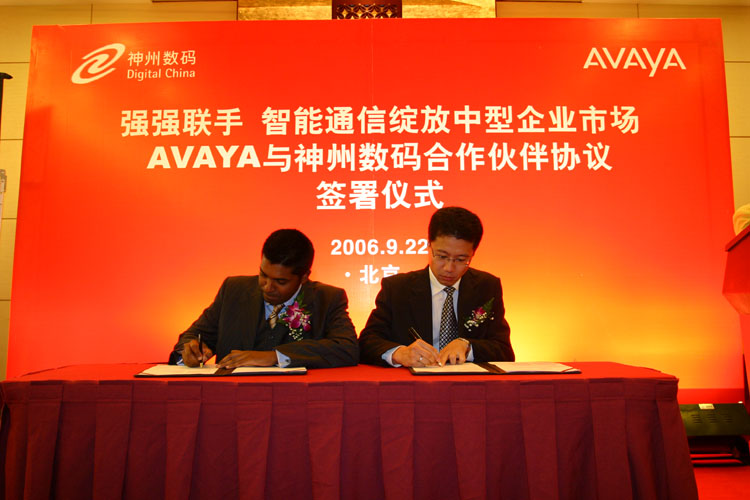 強強聯手 智能通信綻放中型企業(yè)市場 AVAYA與神州數碼合作伙伴協議簽署儀式