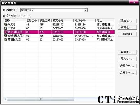 在A8電腦傳真機(jī)的電話商務(wù)通軟件主界面,雙擊通話記錄中的某個客戶號碼,或選中該號碼點(diǎn)擊下面的通話歷史按鈕,您與該客戶的通話歷史便一覽無余。選中某個記錄,您可以對其進(jìn)行編輯(添加姓名、備注該次通話的內(nèi)容),刪除,軟件撥出,加入電話簿等操作。