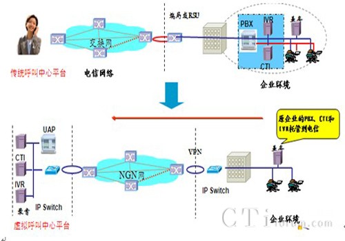 對于中小用戶來說,傳統(tǒng)呼叫中心的投入過大且不易轉(zhuǎn)移,而通過CCOD,中小用戶可以在較小的投資下享有與大企業(yè)一樣的呼叫中心服務(wù),同時(shí)由于CCOD本身虛擬的特性,也能滿足中小企業(yè)工作地點(diǎn)時(shí)常變遷的需求,可以方便的轉(zhuǎn)移。